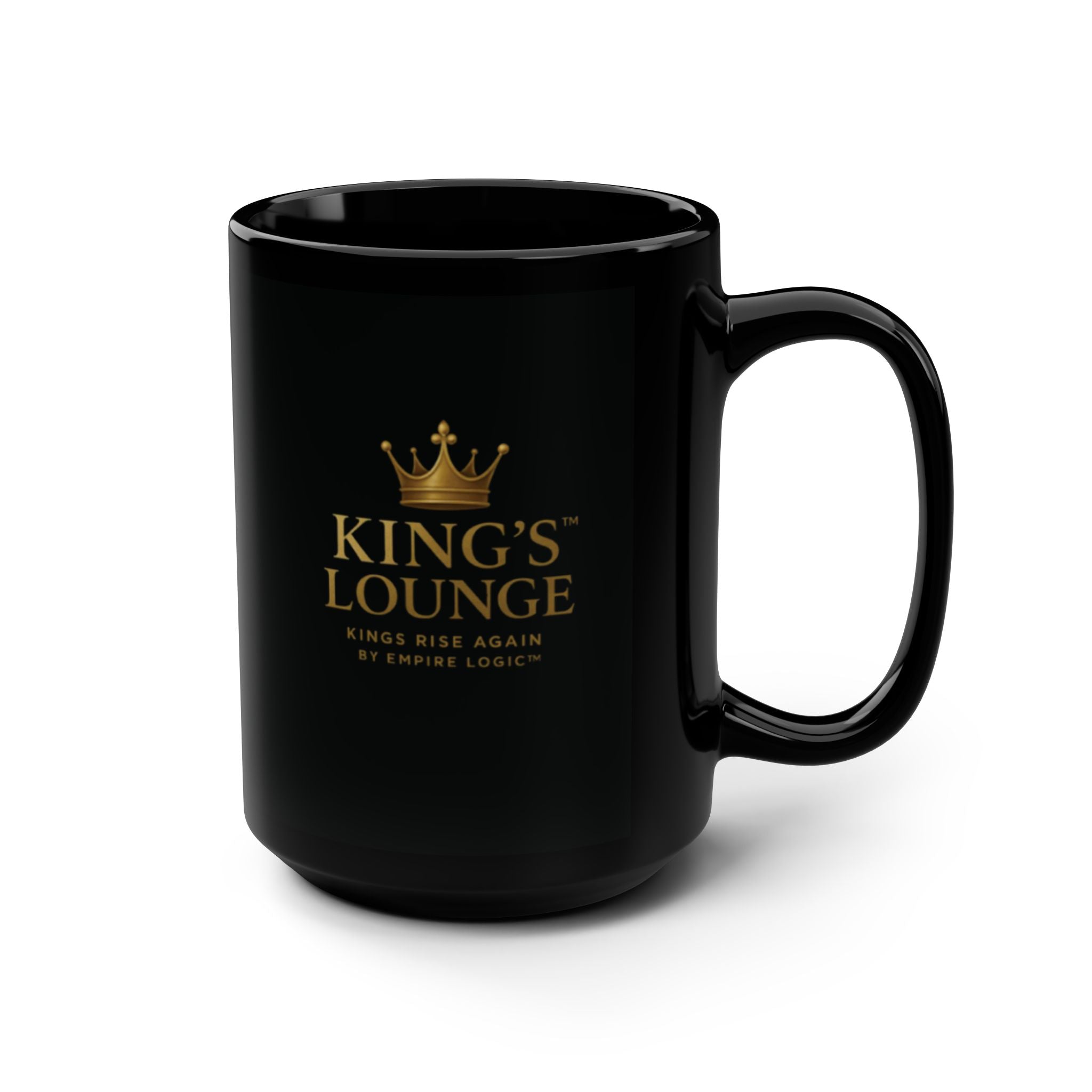 King's Lounge Black 15oz Mug — Luxury Gold Crown Coffee Cup